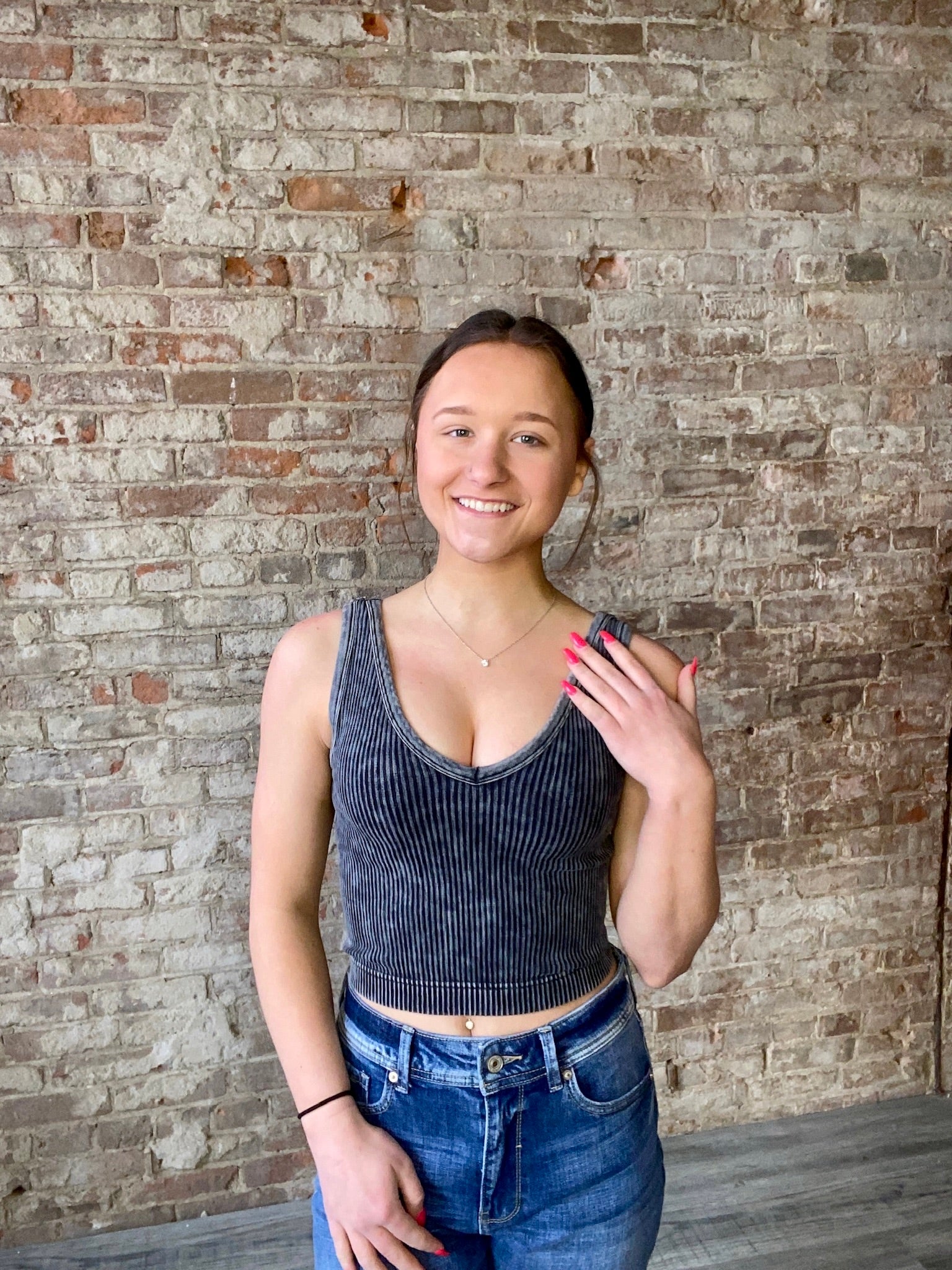 Washed Seamless Reversible Tank Top ~ Ash Black