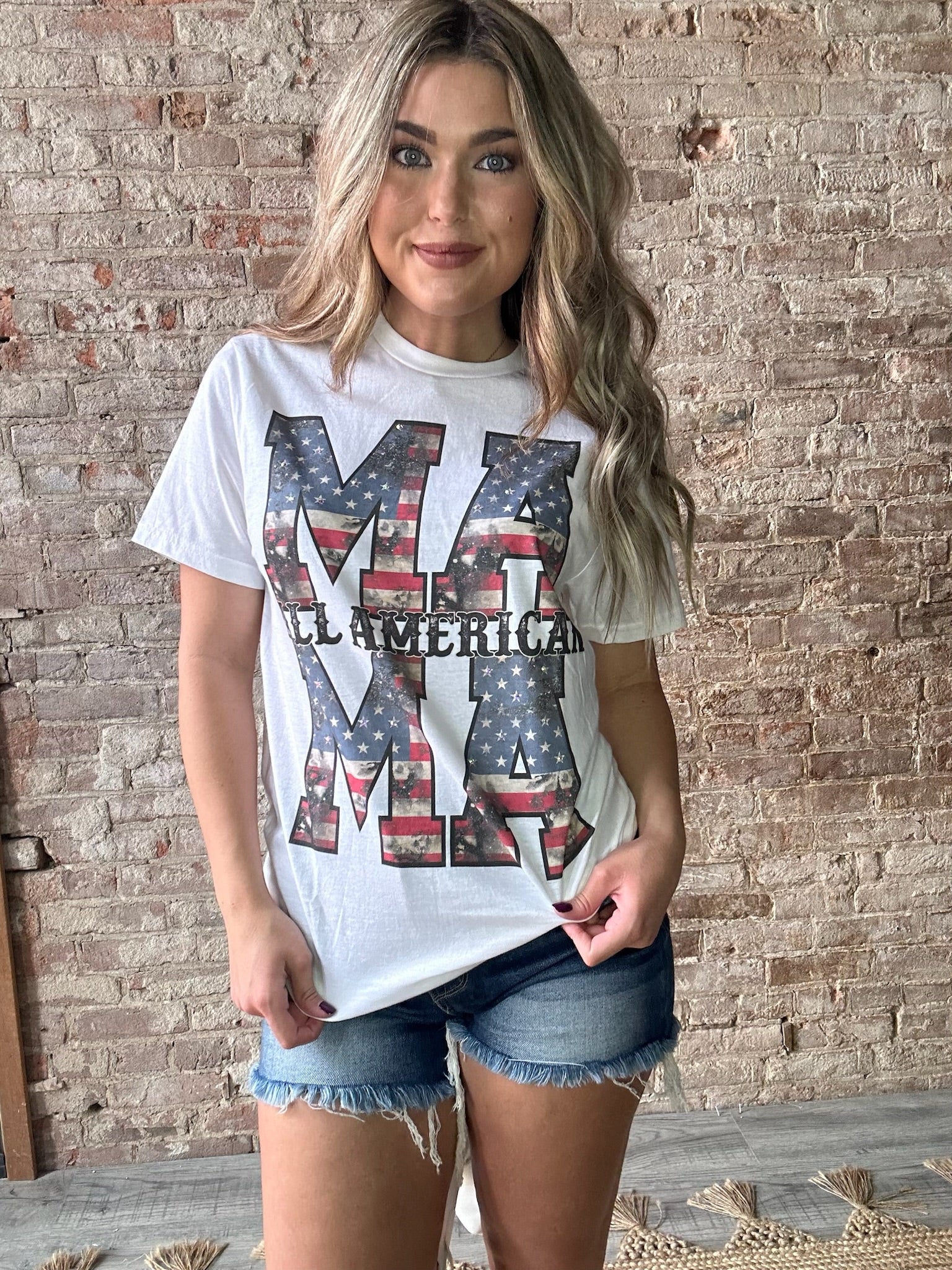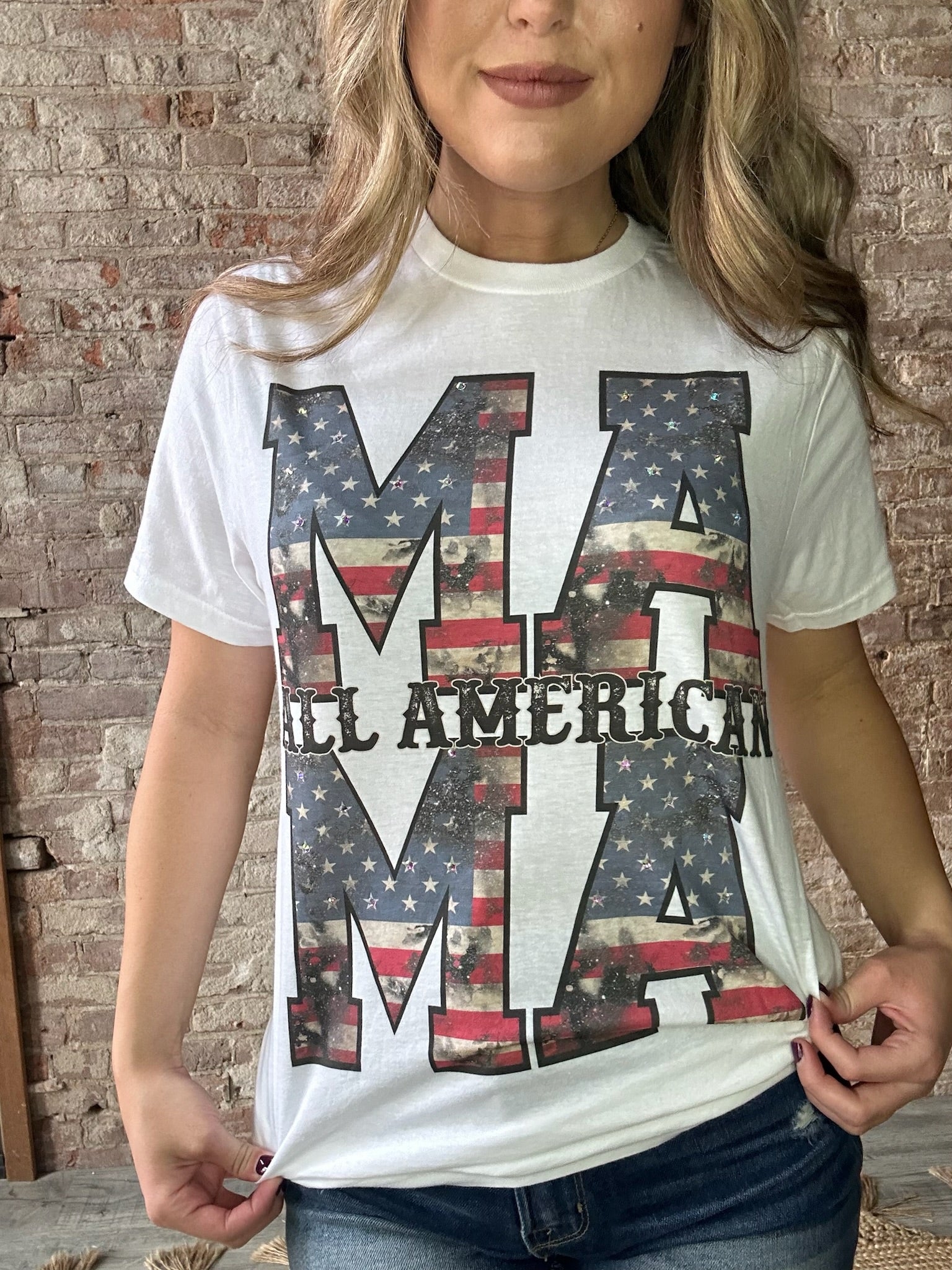 Celebrate your mama pride with this fun American Mama Graphic T-Shirt! Designed for comfort and style, it’s perfect for casual days, family gatherings, or just showing off your patriotic spirit with a playful twist. Soft fabric and a flattering fit make it a go-to favorite for any proud American mom.