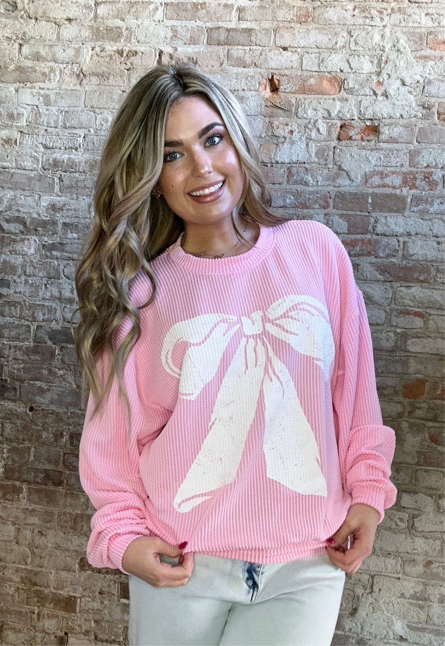 Comfy Oversized Ribbed Bow Sweatshirt