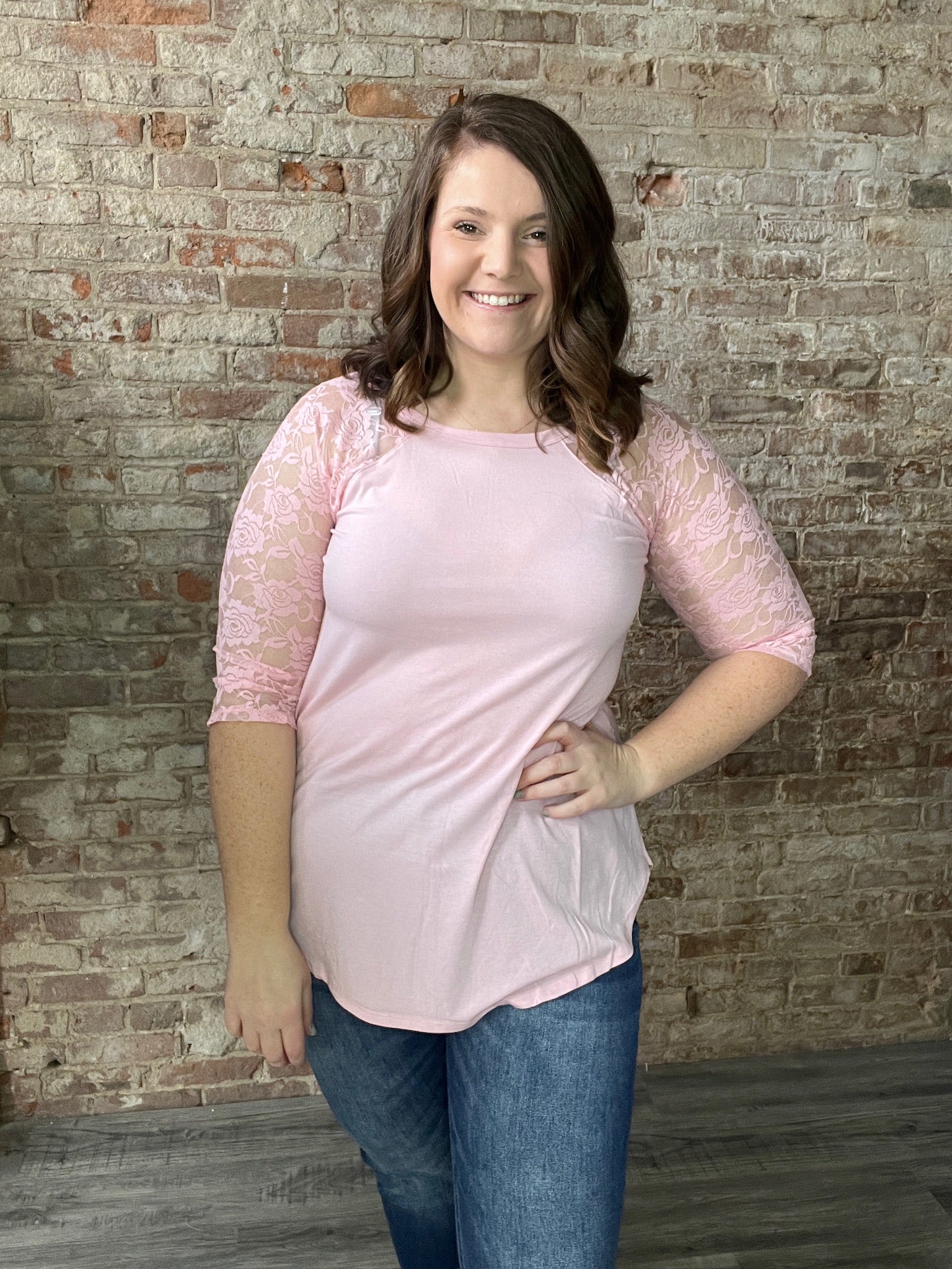 Get ready to turn heads with our Curvy Lace Sleeve Top! This stunning top features delicate lace half sleeves and a flattering round neck and hem.