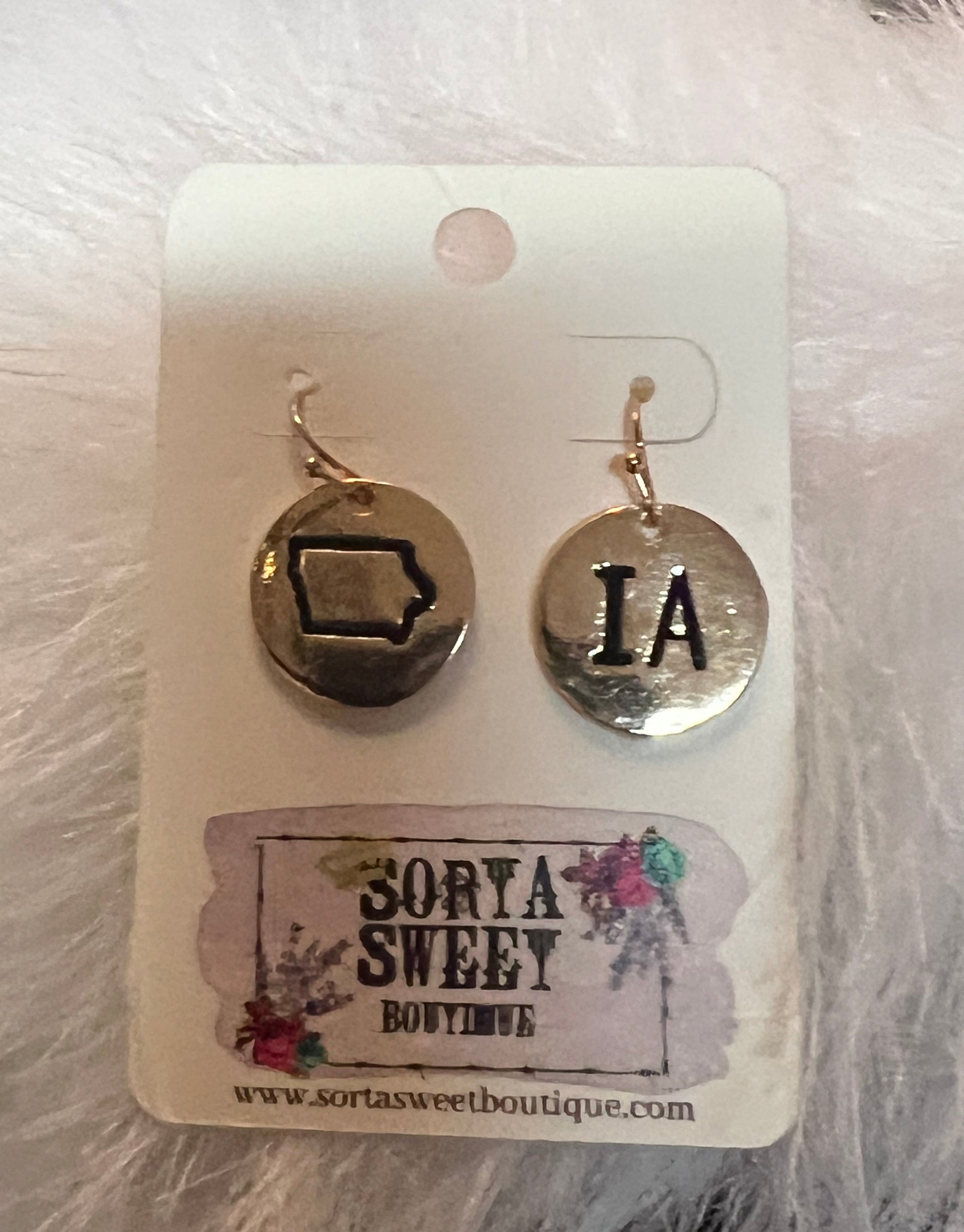 Celebrate your Iowa pride with these stunning gold earrings, the perfect accessory for locals and lovers of the Hawkeye State alike. Crafted with attention to detail, these earrings feature the iconic shape of Iowa in gleaming gold, making a subtle yet meaningful statement. Whether you're showing your roots, supporting your alma mater, or simply love the heartland, these versatile pieces work beautifully for everyday wear or special occasions. Lightweight and comfortable, they're designed to become your go-to earrings that spark conversations and connections with fellow Iowans wherever you go.