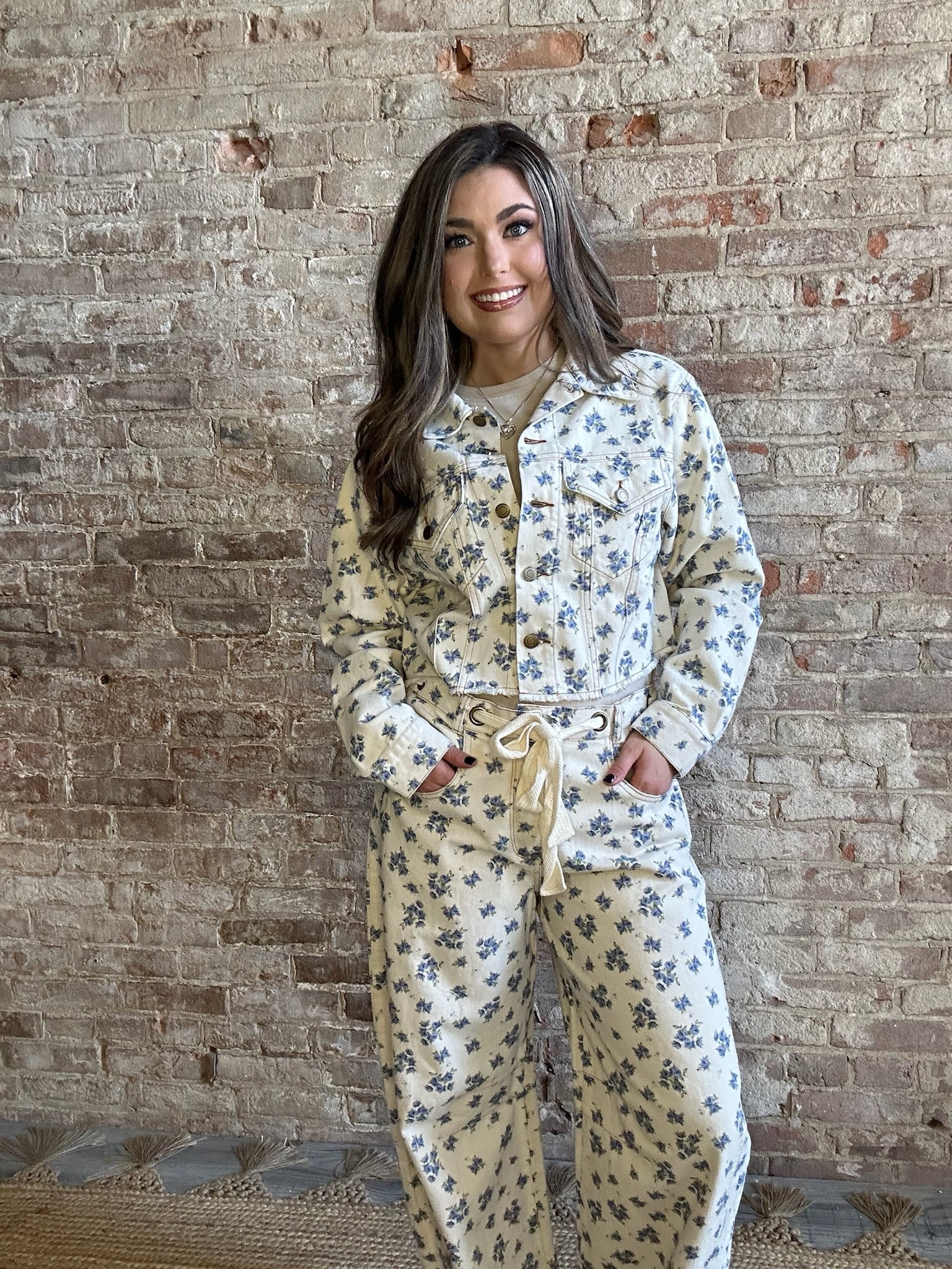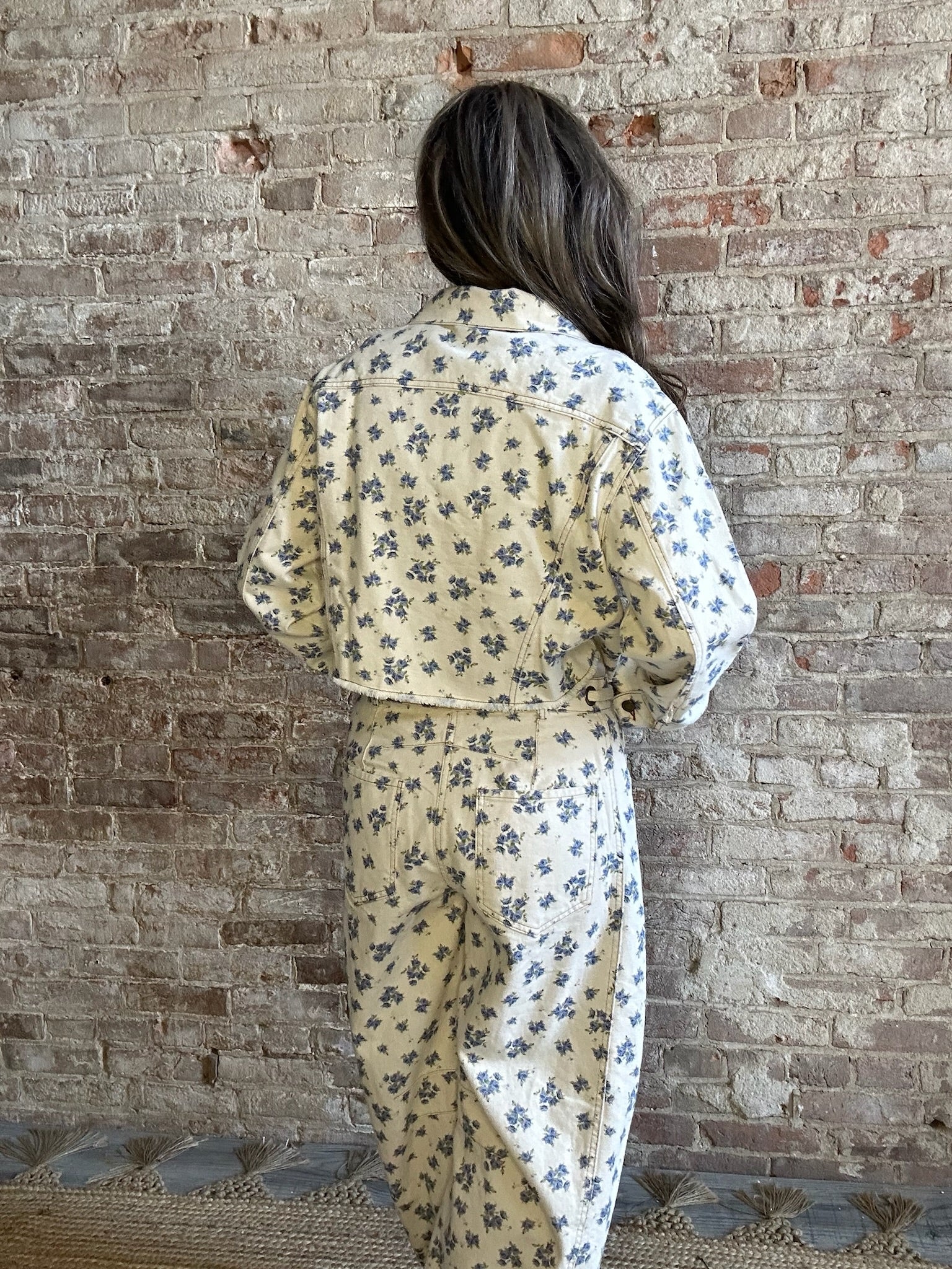 Add a splash of charm to your wardrobe with this Ivory Denim Cropped Jacket featuring delicate blue floral accents. Its playful design pairs perfectly with casual outfits, giving you a fresh, fun look that’s both stylish and comfortable. Ideal for layering on breezy days, this jacket brings a touch of whimsy to your everyday style.