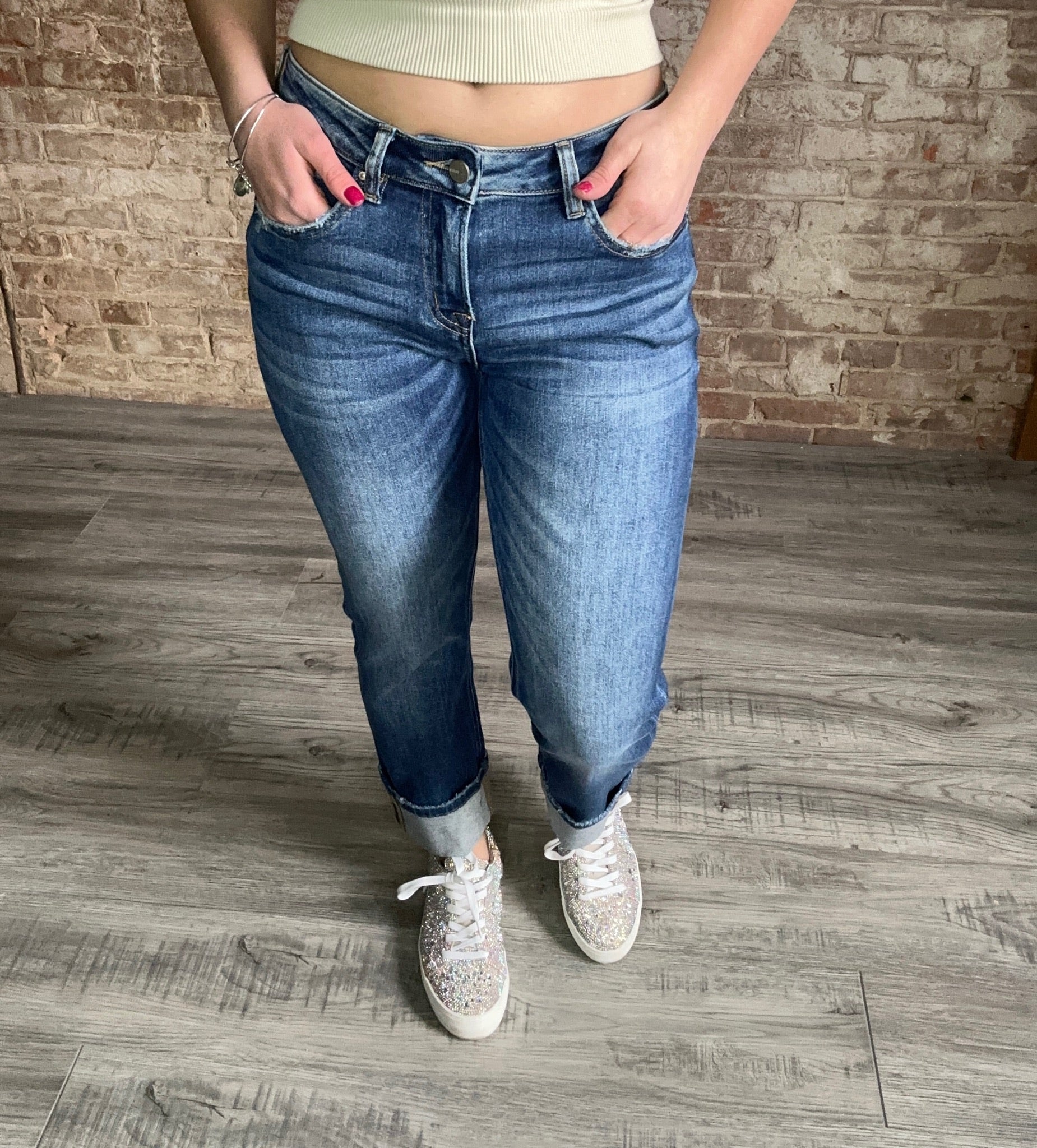 Elevate your denim game with our Mid Rise Straight Leg With Cuff jeans! Featuring a flattering mid-rise fit and versatile straight leg style, these jeans are designed to enhance your curves and provide all-day comfort. The cuffed hem adds a touch of trendy flair to complete your look. Experience the perfect combination of style and comfort with our Mid Rise Straight Leg With Cuff jeans.