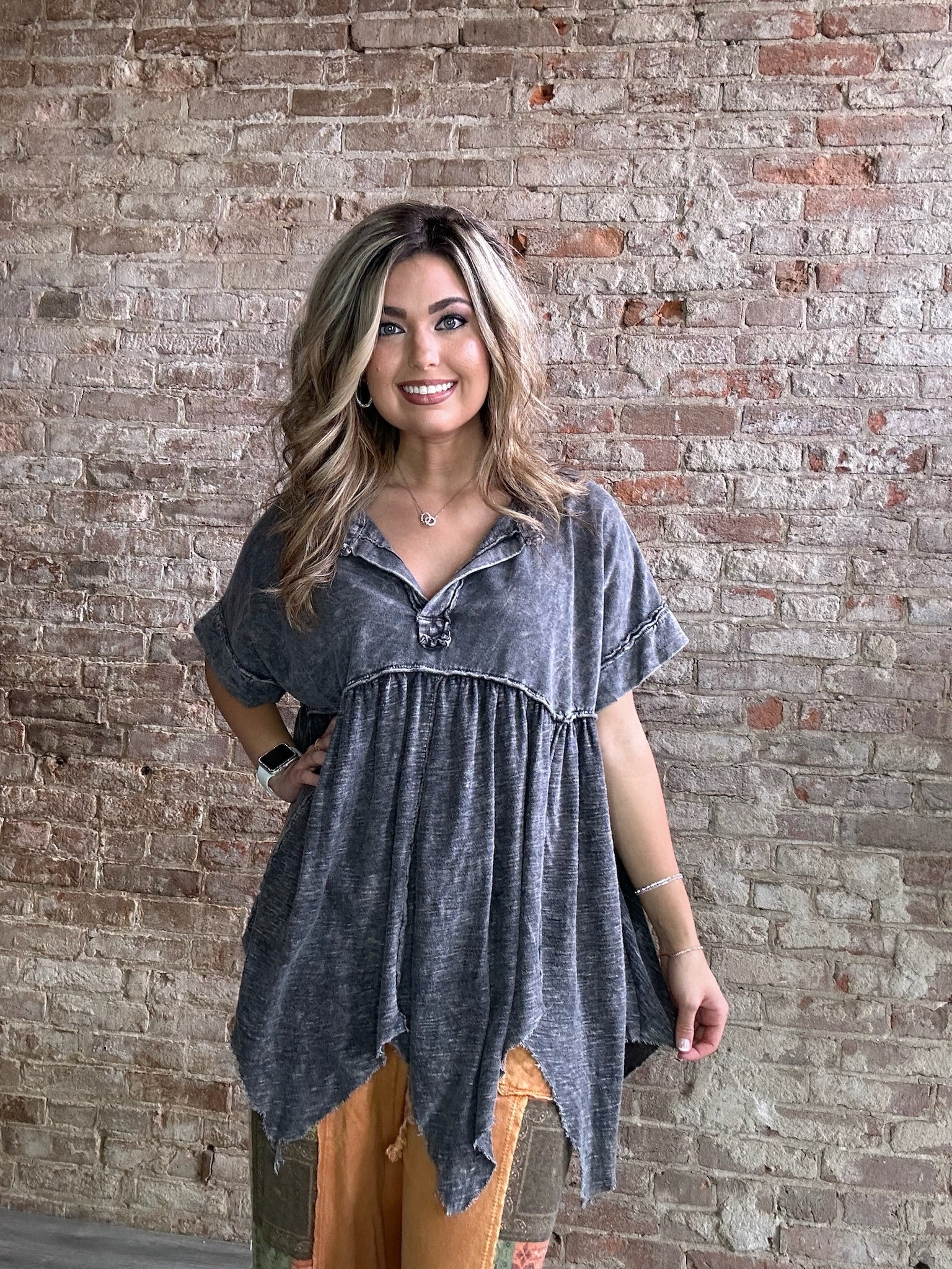 Indulge in effortless bohemian style with our Mineral Washed Boho Flowy Tunic. This tunic features a unique mineral wash for a truly one-of-a-kind look and feel. Its flowy silhouette is perfect for all-day comfort while embodying the free-spirited vibe of boho fashion. Elevate your wardrobe with this must-have piece!