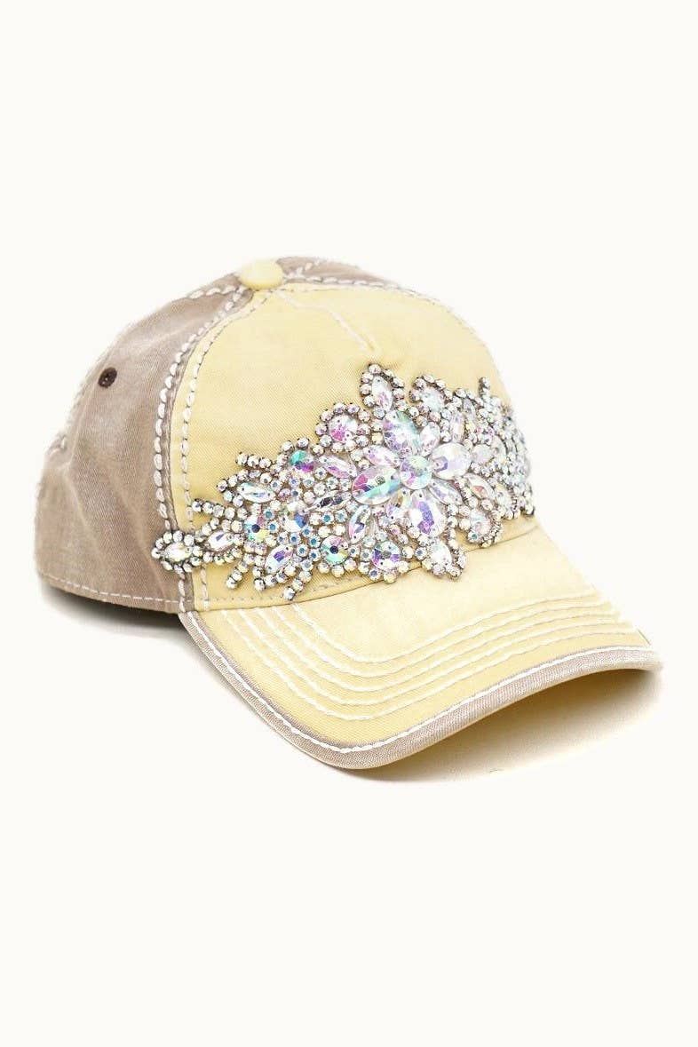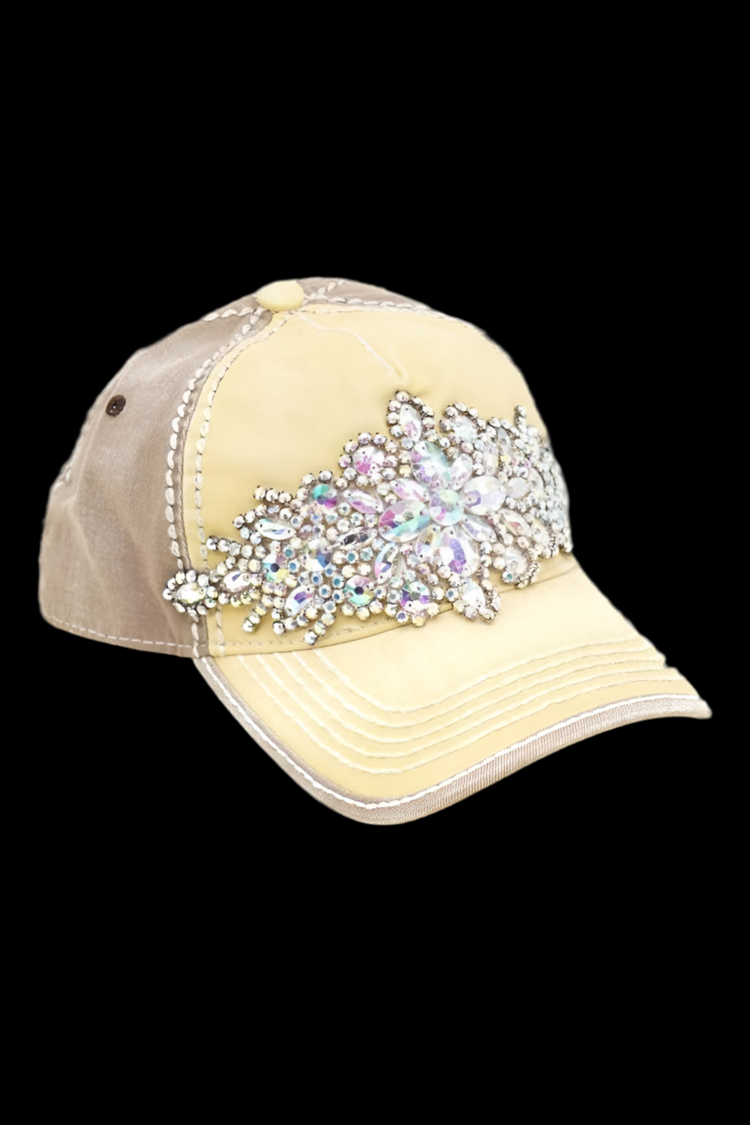Abstract Bejeweled Bling Glitz Two-Toned Cap, Adjustable ~ Yellow