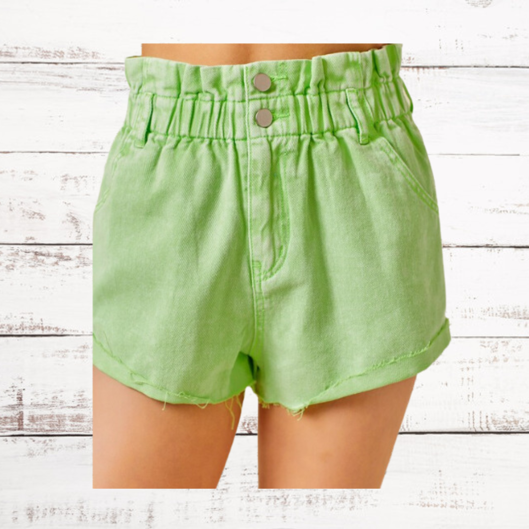 Paper Bag Waist Colored Denim Shorts~ Lime