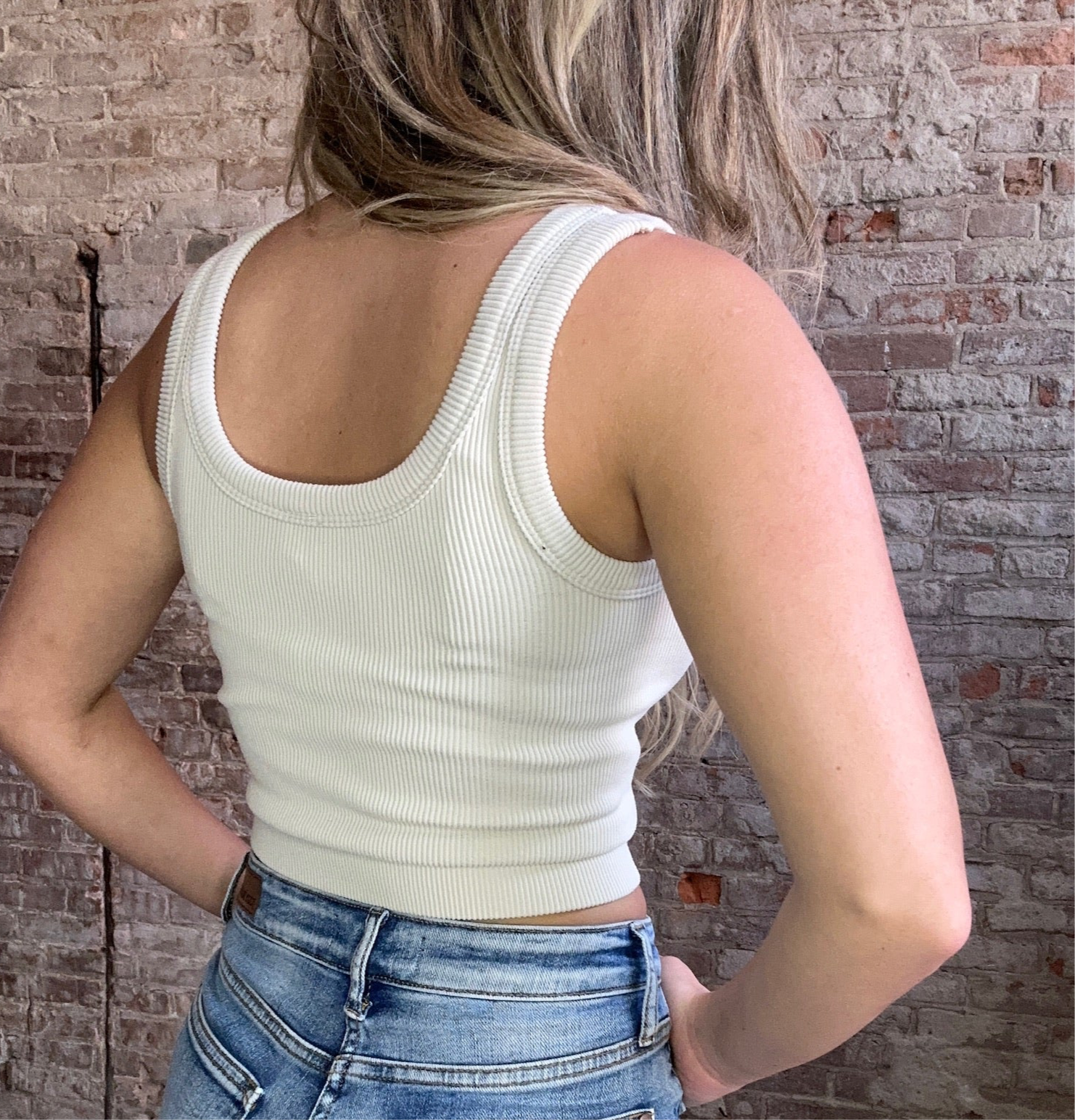 Ribbed Cropped Scoop Neck Tank ~ Beige