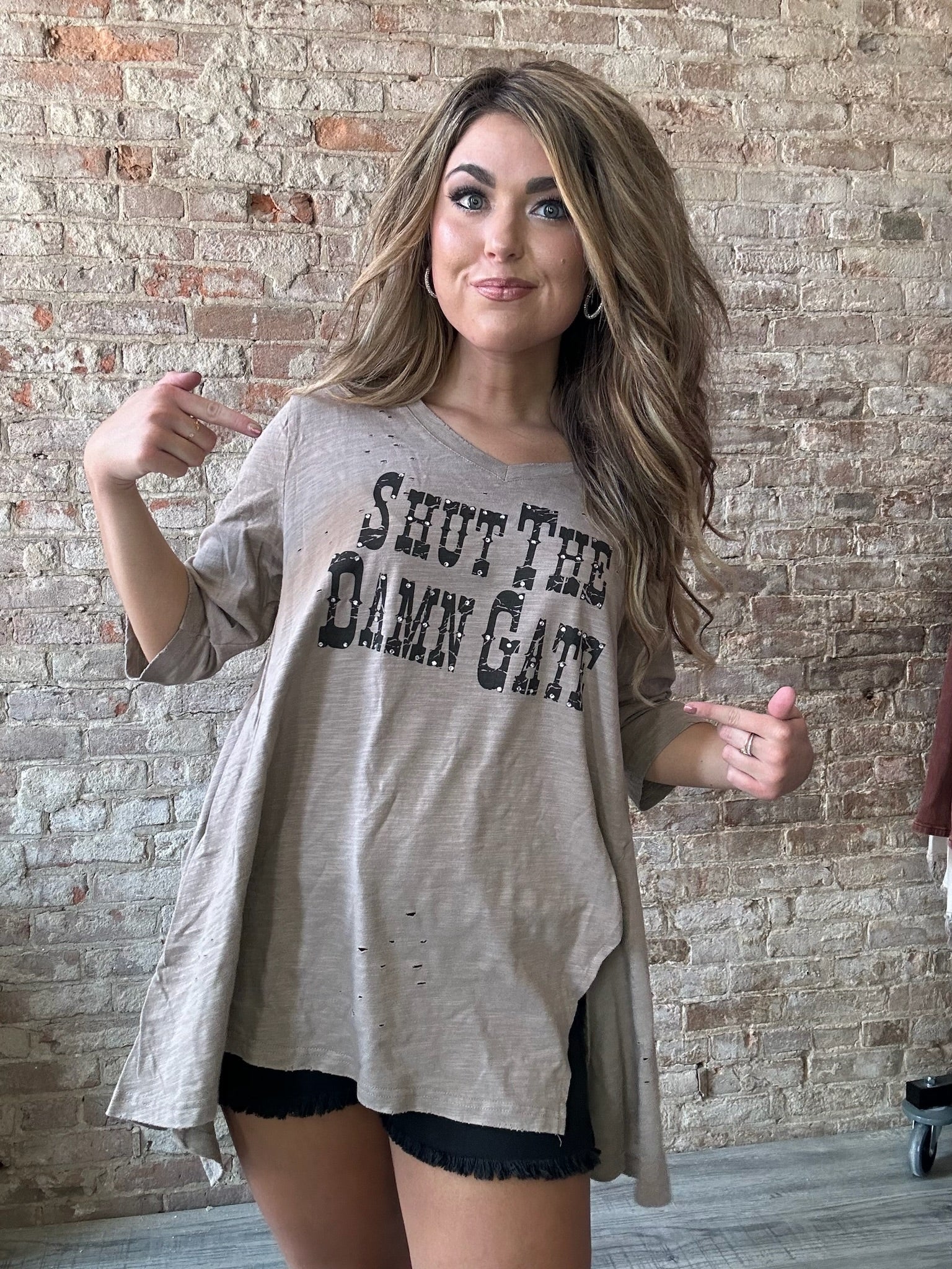 Keep the gate and your style on point with Shut The Damn Gate Tattered Shirt. With a distressed design and a bold statement, this shirt is perfect for those who don't take themselves too seriously. (Or maybe those who do but just need a reminder to shut the damn gate.)
