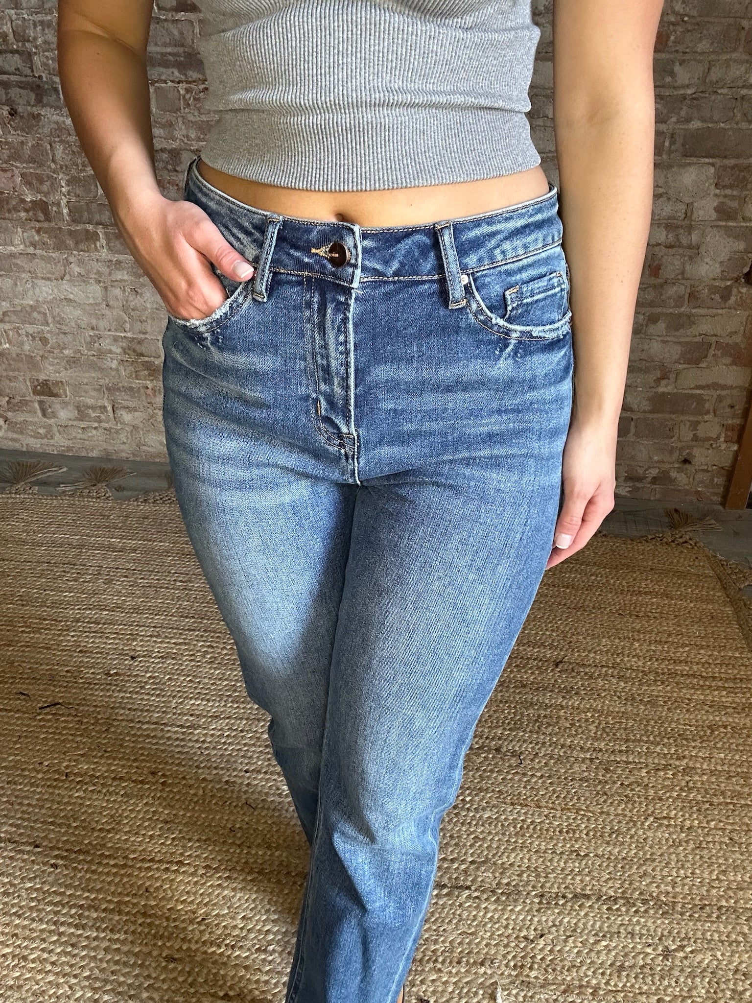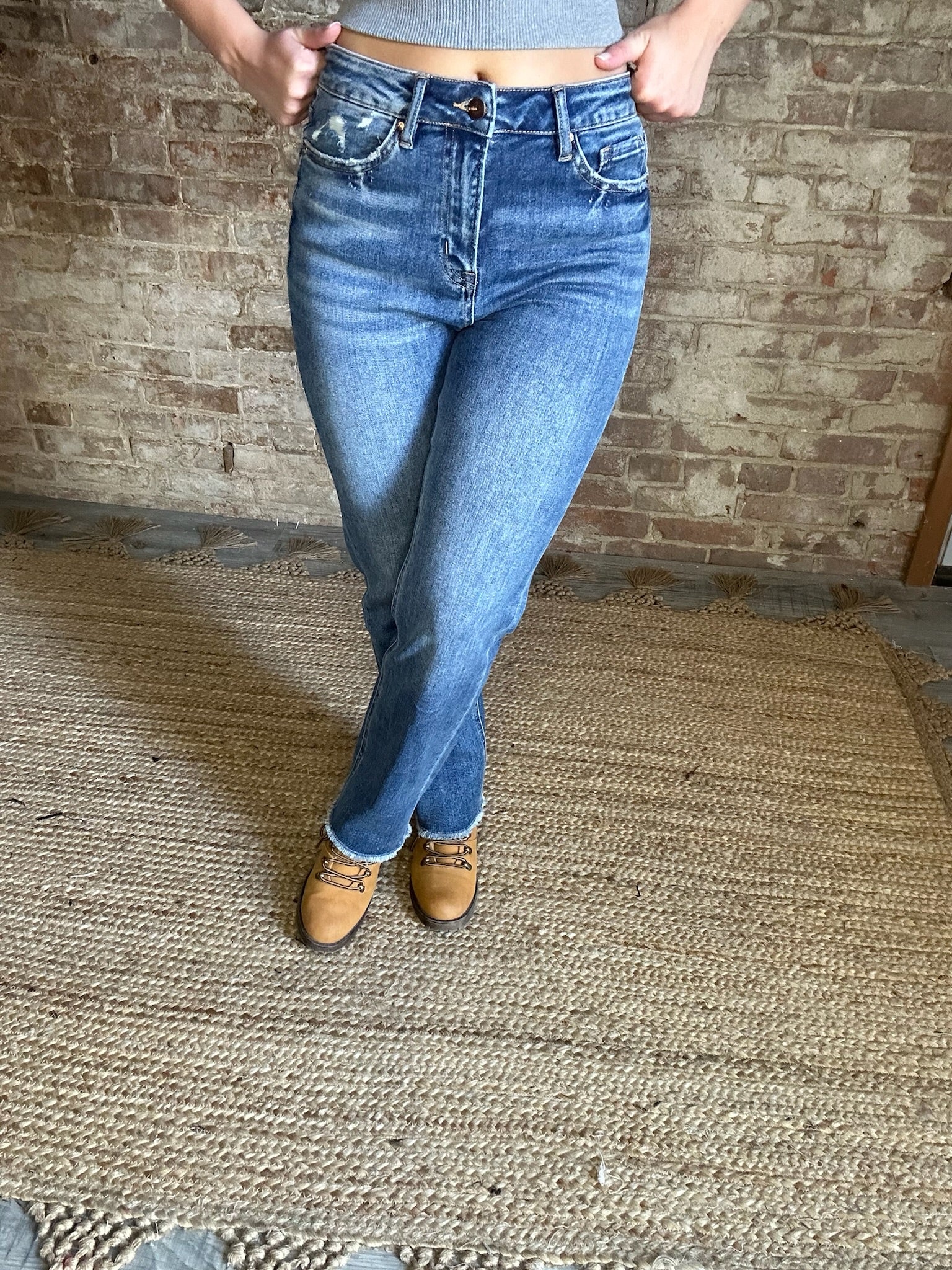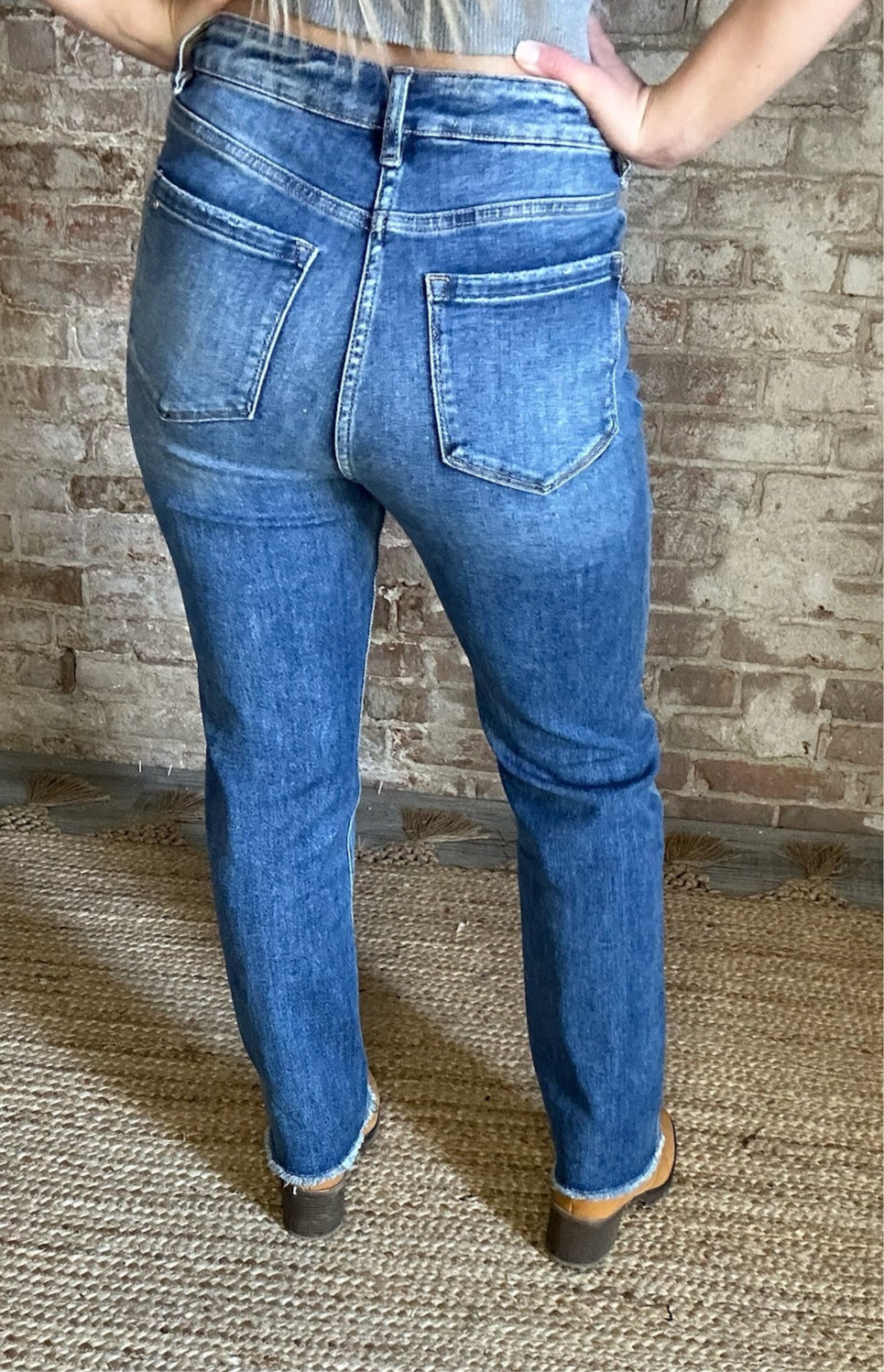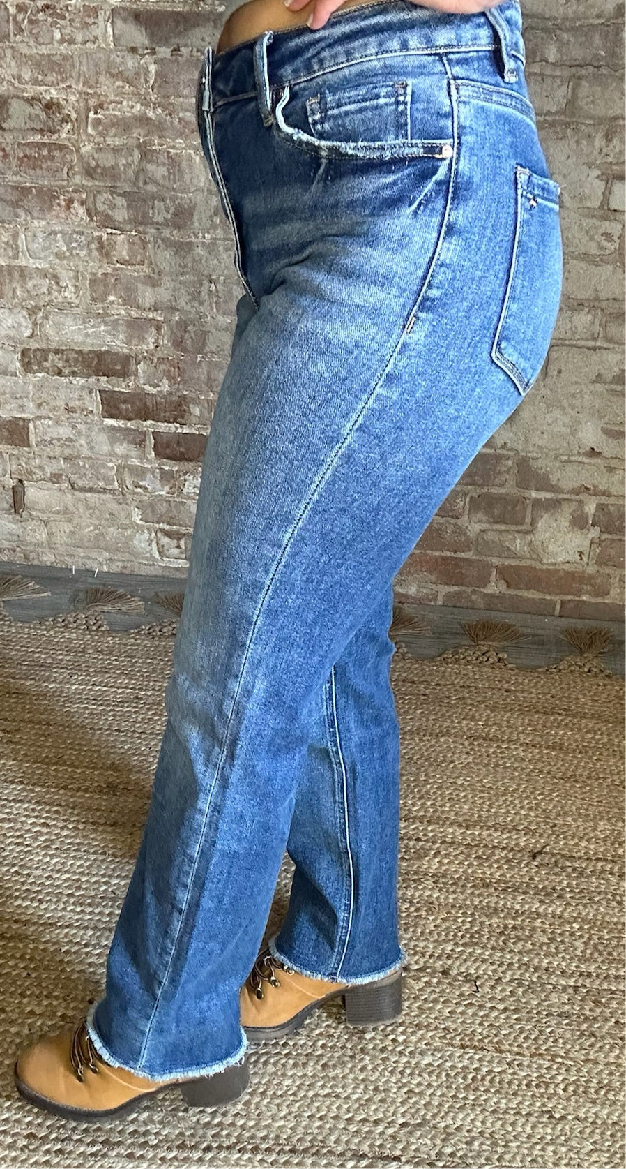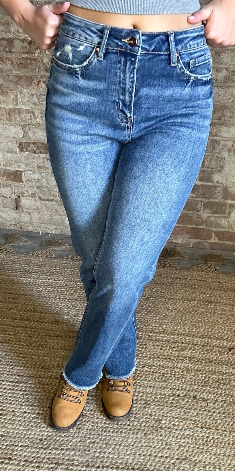 Step up your denim game with these Super High Rise Straight Jeans! Crafted with a comfy blend of cotton, T400, and a touch of spandex, they hug your curves while keeping you free to move. The super high rise flatters your waist, and the straight leg with a 14.5" fringe hem adds a fun twist to classic style. With an 11" front rise and 28" inseam, these jeans are perfect for showing off your favorite kicks or strutting your stuff. Playful, comfortable, and effortlessly cool—these jeans are ready to join your wardrobe adventure!